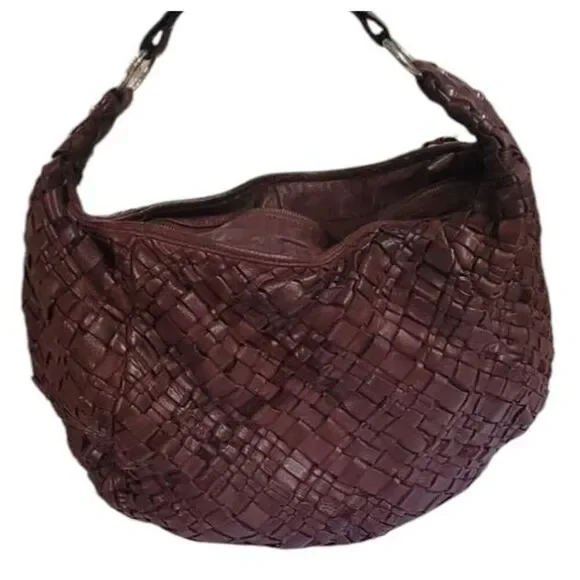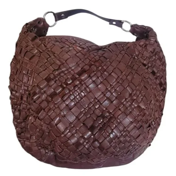 Tano Rounded Woven Leather Satchel Hobo Shoulder BagApproximate measurements 19 inches tall, 13 inches wide, 3 inch depth, Approximate 16 inch strap or 12 inch drop, comfortable...