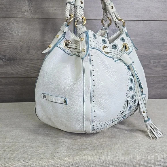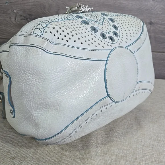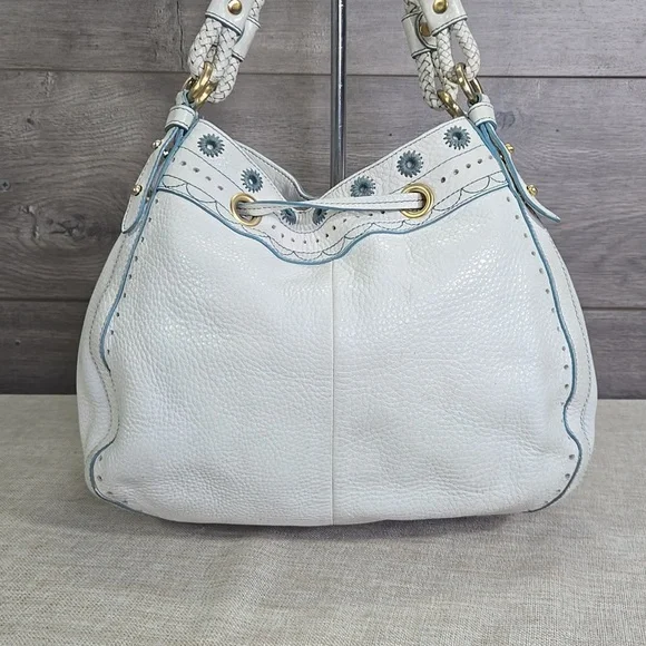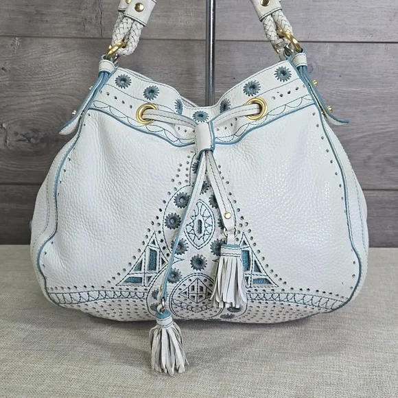 Cole Haan Kayla White Embellished Leather Satchel Shoulder Bag Tote Satchel