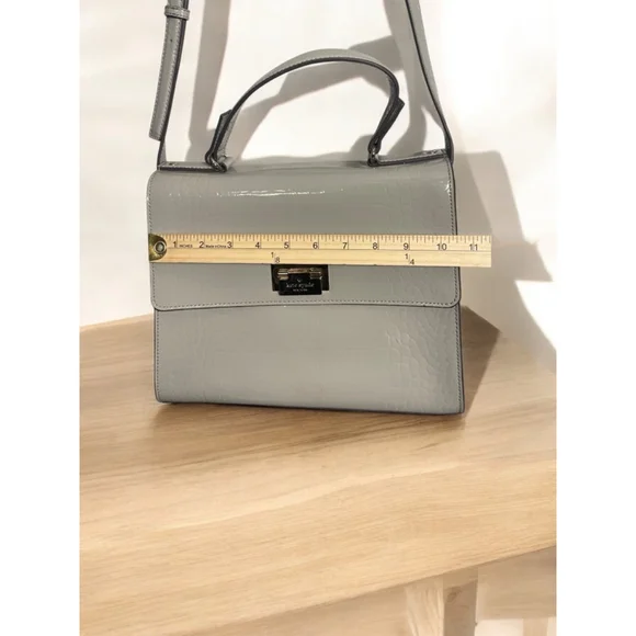 Kate Spade Doris Knightsbridge Grey Soft Taupe Handbag Patent Leather Croc Purse