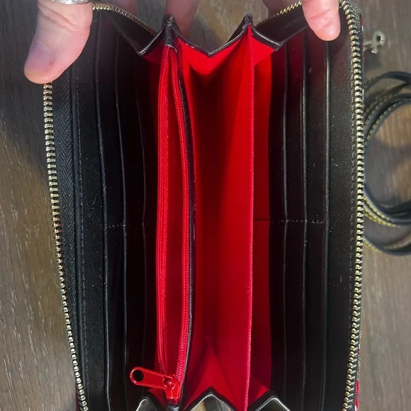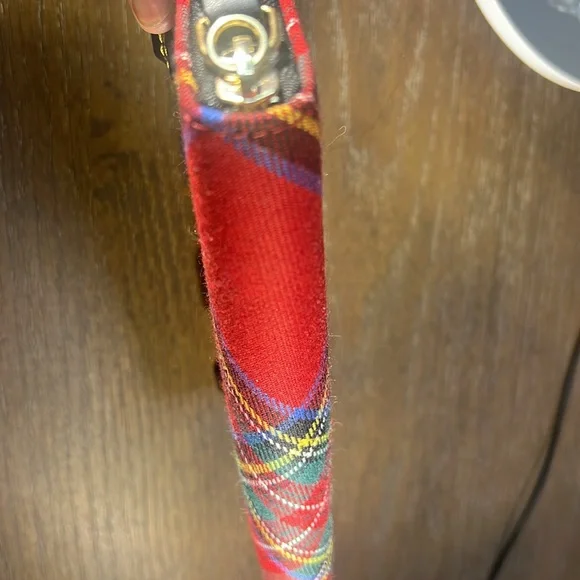 Dooney & Bourke Red Tartan Large Zip-Around Wristlet CrossbodyNWTH 4.25 “ x W 1” x L 8.25”Zipper closureDetachable Shoulder Strap, drop length 24”One Inside Zip Compartment. Two Compartments. Twelve Credit Card slotslinedSmoke and Pet Free Home