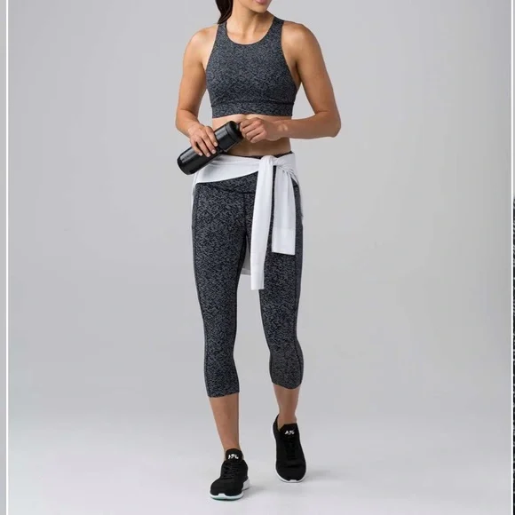 Lululemon Fast and Free Crops Sz 8 w Pockets on legs EUCSound wave Alpine Black White19” inseamReflective details Clean. Excellent condition!!!!Feel fast and free in these...
