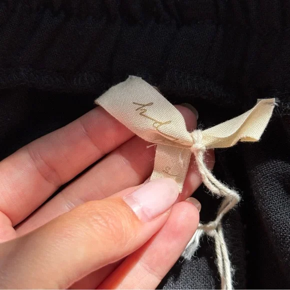 Condition: new with tag attached, has not been worn. No damage or flaws.High waisted. Soft elastic/drawstring waist.Slight flare.PocketsInseam measures approx. 28"