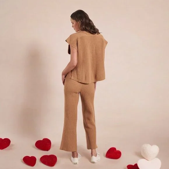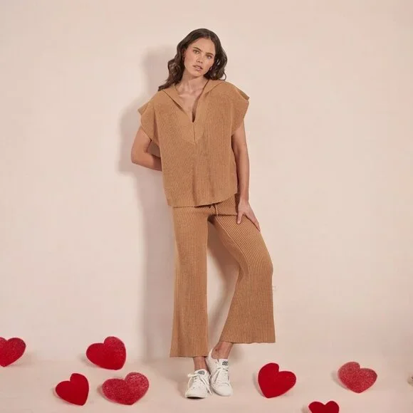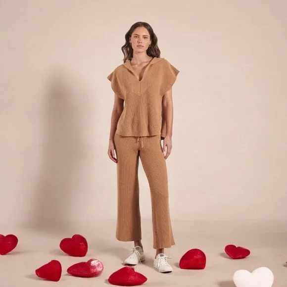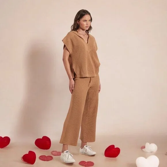 PRODUCT + FIT DETAILS- COTTON ACRYLIC BLEND YARN- TRUE KNIT STYLE- RIB KNIT TECHNIQUE- STRAIGHT LEG PANT- ELASTICATED WAISTBAND- WAIST SEAM DRAWSTRING DETAIL WITH KNITTED CORD-...