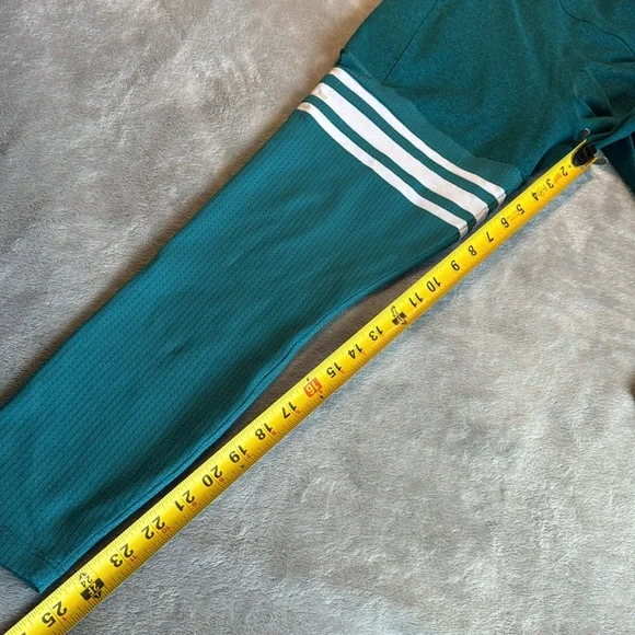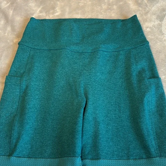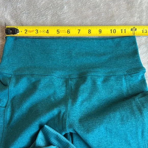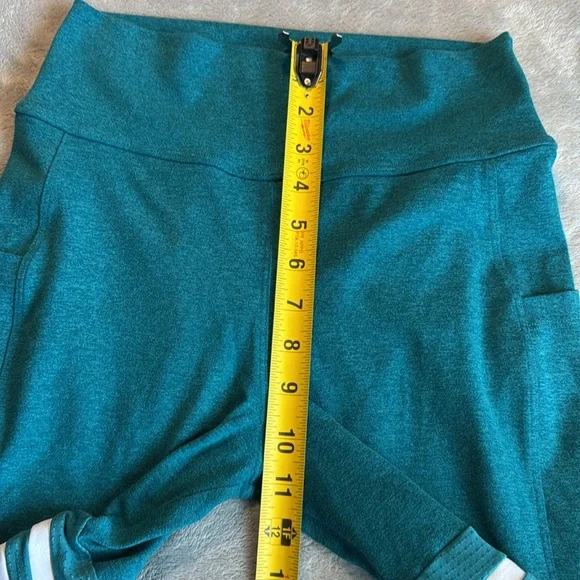 Listing for my friend:Color: LagoonDesigned for: Workouts/Active LivingExtreme comfortSide pocketsFits all size cellphonesPlenty of stretch for different heightsDoes not pill, shrink or fadeBreathable mesh for ventilationNo muffin top87% Polyester 13% SpandexPre-owned with no holes or stainsMatching sport bra is listed in size MediumWaist 12"Rise 11"Inseam 25"Measurements are approximate and taken while item is lying flat and are for reference only. They do not guarantee fit.B1DA3T