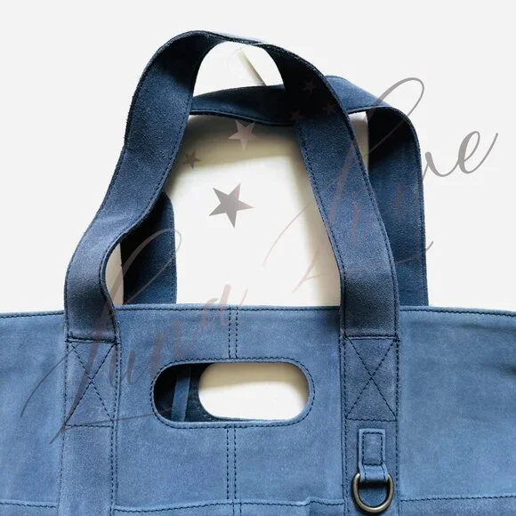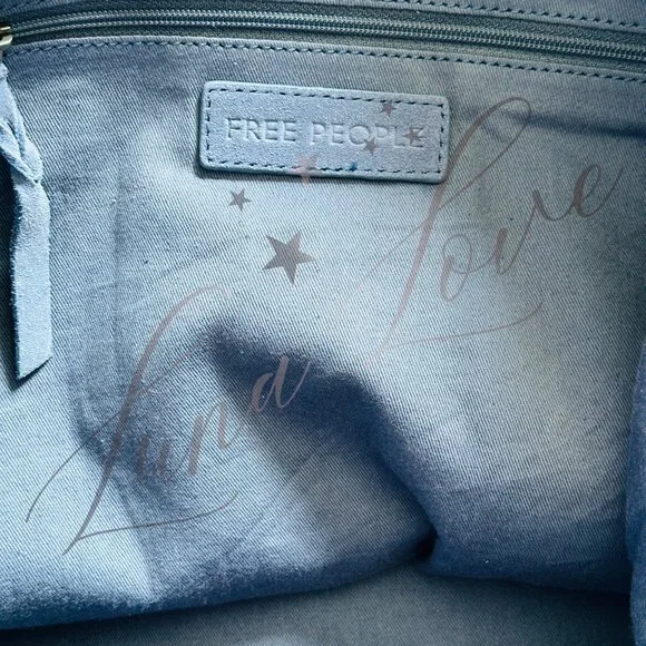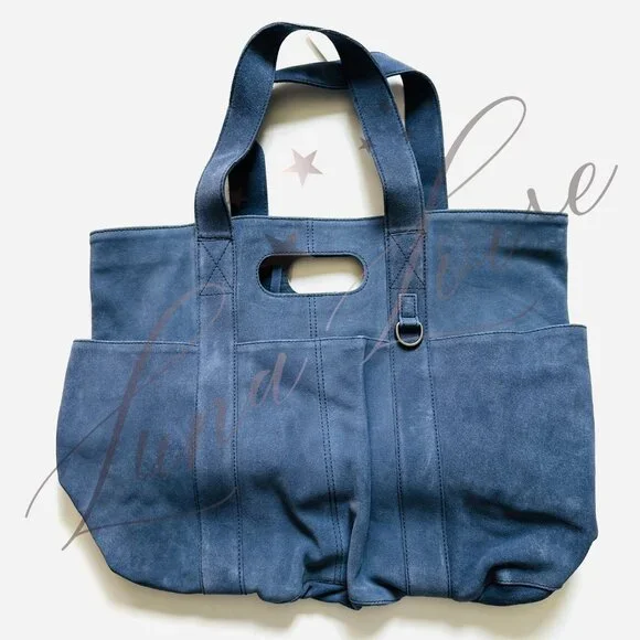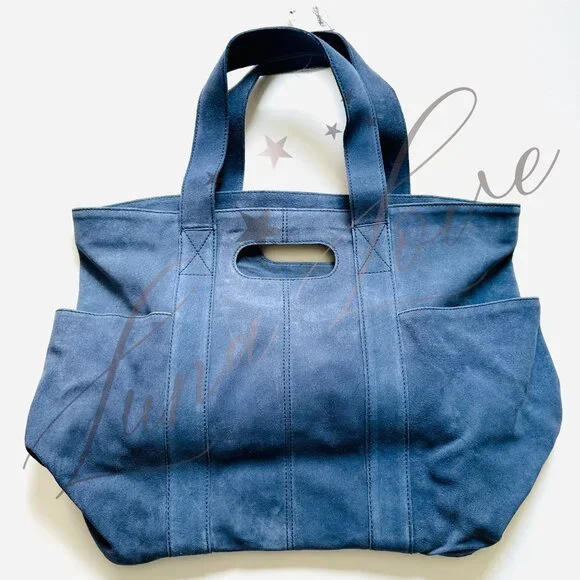 NWT! Free People Suede Caravan Tote In Denim. Designed to be your daily bag to take you from the workday to the weekend, this totally timeless tote is featured in a staple square silhouette and stunning suede fabrication with defined pocket detailing and double top handles for added functionality. Please note suede will naturally vary in finish and color - specifically on the edges. You will see areas that will be darker and lighter. Please see all photos.Free People focuses on creative, confident and comfortable in all aspects of her being, free and adventurous, sweet to tough to tomboy to romantic. A girl who likes to keep busy and push life to its limits, with traveling and hanging out and everything in between.❌ I have had a few accounts stealing my photos - even with my watermark! Please be safe when shopping! ❌Details- Square silhouette- Snap top closure- Suede fabrication- Fully lined interior- Interior zip pocket- Metal tab for keychains or charmsSize + Fit15 inWidth: 14.2 inDepth: 5.9 inPlease Note: Colors will differ for everyone viewing them due to screen settings - vibrancy, exposure, highlights and midtones. My camera will accentuate some tones as well. I try to capture what is truest, but colors will vary. Please keep this in mind.Smoke Free HomeREASONABLE Offers Only!❌ NO LOWBALLS - It is rude! ❌