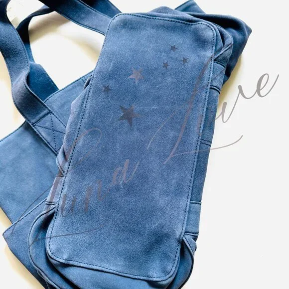 NWT! Free People Suede Caravan Tote In Denim. Designed to be your daily bag to take you from the workday to the weekend, this totally timeless tote is featured in a staple square...