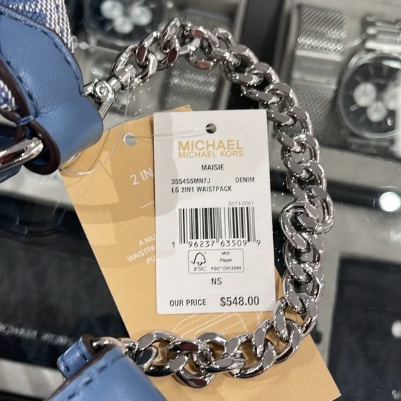 MICHAEL KORSMaisie Large Logo 2-in-1 Sling Waist Fanny Pack Crossbody Denim/silverNWT New with the tag authentic Maisie waist pack is a street-chic essential for off-duty days....