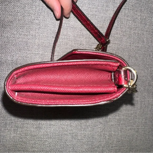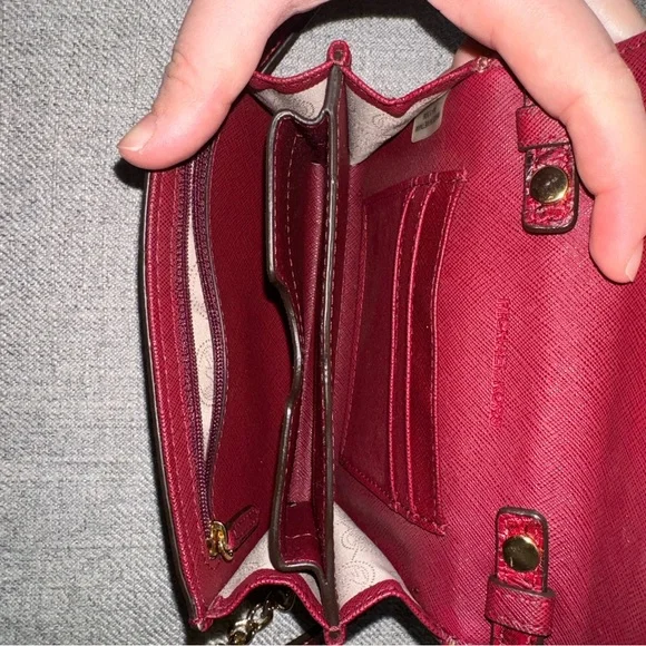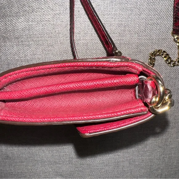 This compact Michael Kors crossbody handbag is a stylish accessory for any woman. With its bold red faux snakeskin exterior, it´s sure to turn heads. The brand is well-known for quality craftsmanship and attention to detail, making this bag a must-have for fashion-forward individuals. The crossbody style is both practical and trendy, so you can wear it out and about without feeling weighed down. It´s perfect for carrying all your essentials in a compact and stylish way. Whether you´re out for a day of shopping or a night out on the town, this handbag is the perfect accessory to complete your outfit.Beautiful gold hardware and a removable crossbody strap make this bag the ultimate versatile piece.