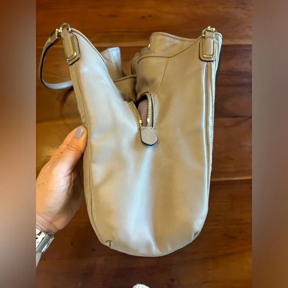 Coach Madison Small Phoebe Shoulder Bag. A twist on the classic! Pintuck leather. Multiple pockets. Full description in pictures. Sold out online. Good used condition. Please note some small areas of wear as shown in pictures. Inner pockets have some appearance of makeup dust and marks. Offers welcome!