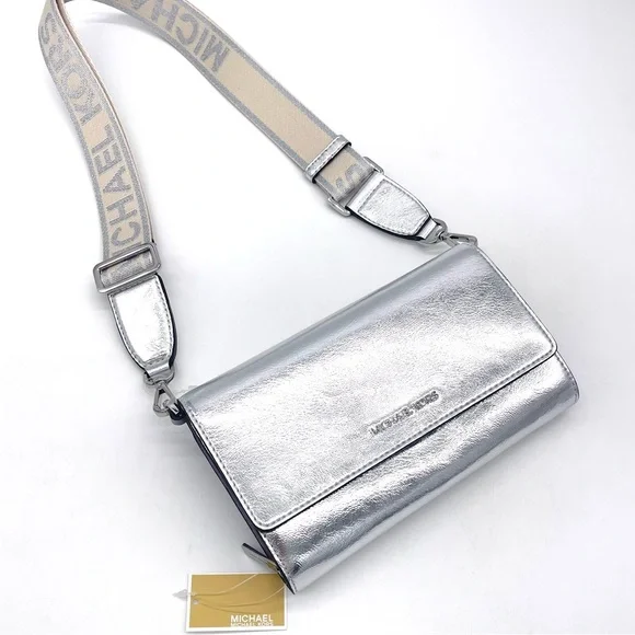 Michael Kors Large Zip Around Wallet Crossbody Bag Silver
