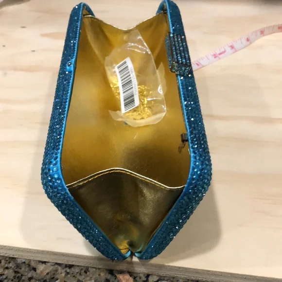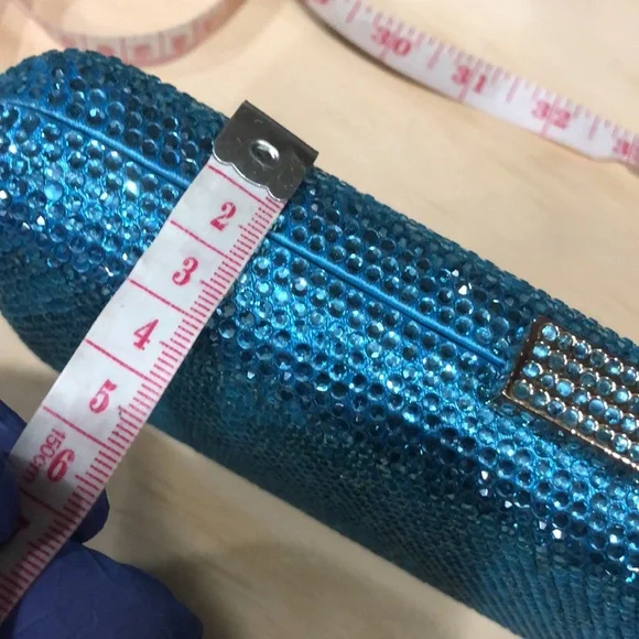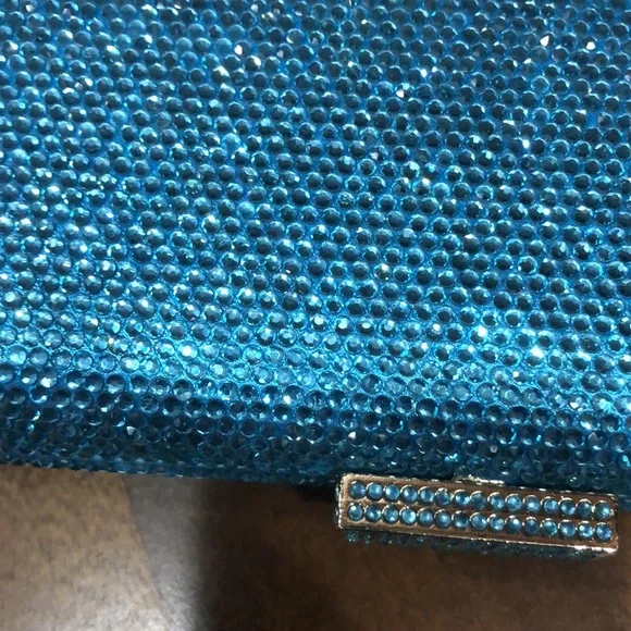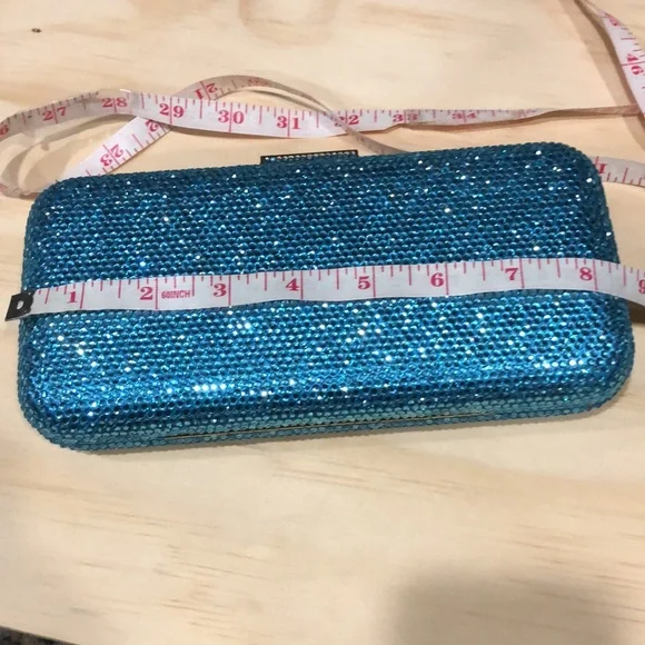 This stunning blue rhinestone crystals turquoise clutch bag . It is perfect for any occasion. Its elegant design and vibrant color make it a standout accessory. Luxury. Large size.Measure around 22x11 cm . Not precise see the pictures measurements. It has a hips level shoulder strap. The picture aren’t make justice. Very shiny rhinestone,