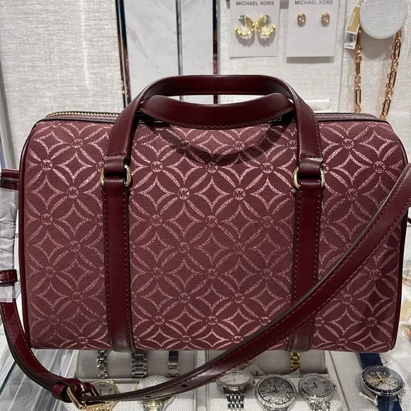 MICHAEL KORS JST TRAVEL MEDIUM DUFFLE SATCHEL SHOULDER CROSSBODY BAG MK OXBLOOD MULTI JACQUARDNWT Authentic This Michael Kors Travel duffle bag is a versatile and stylish...