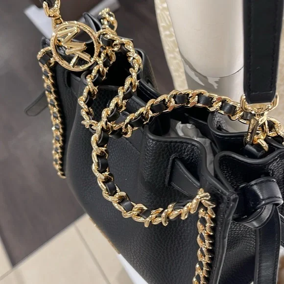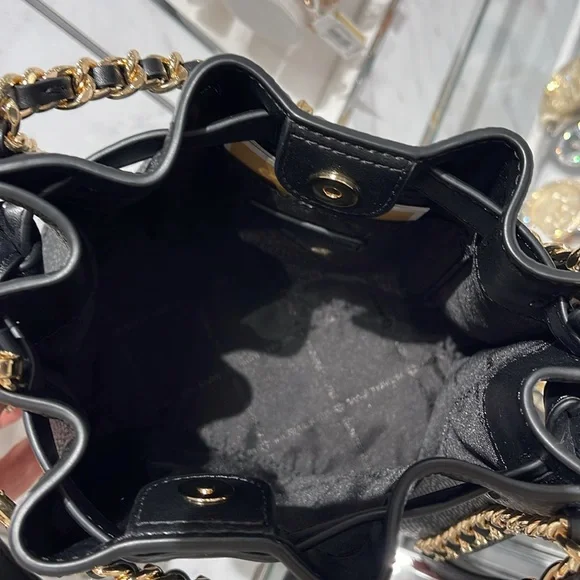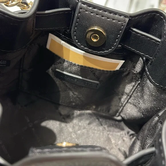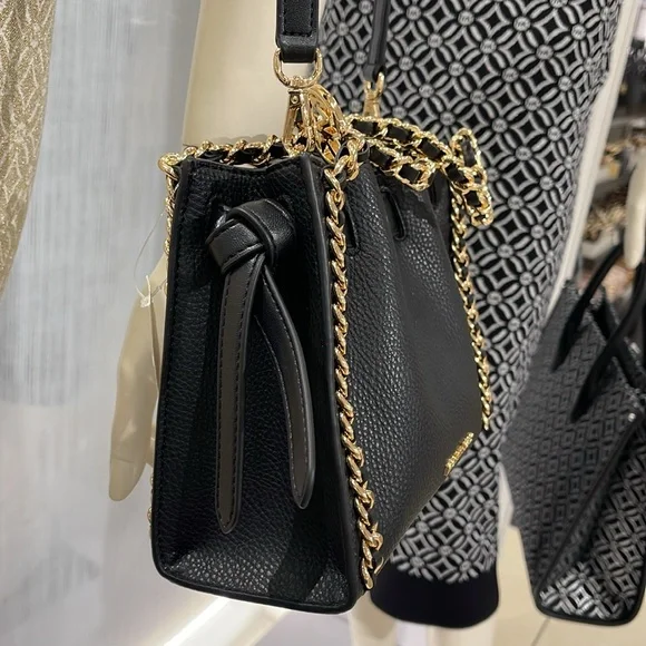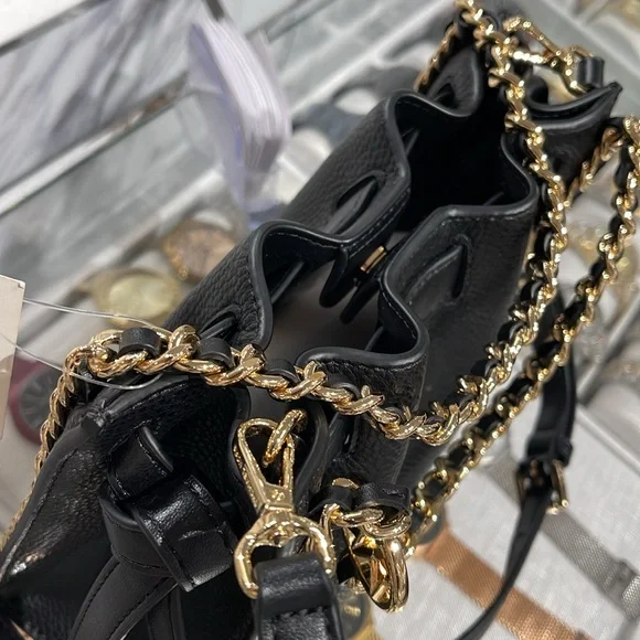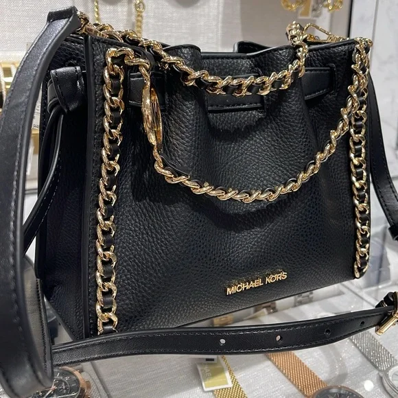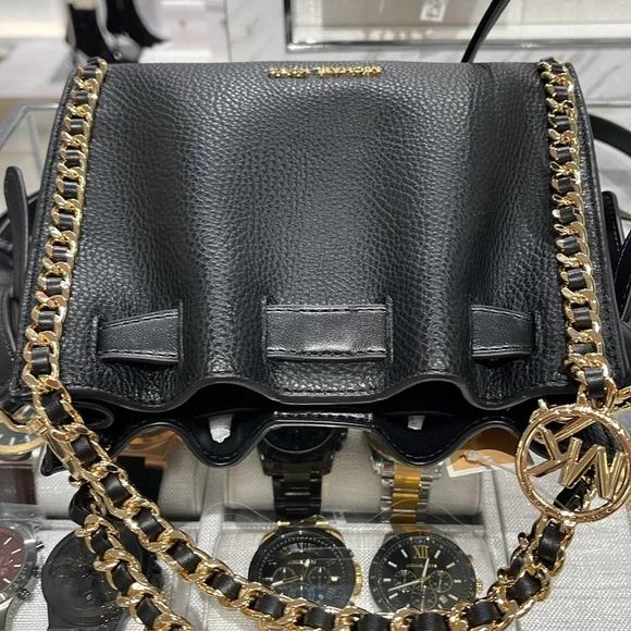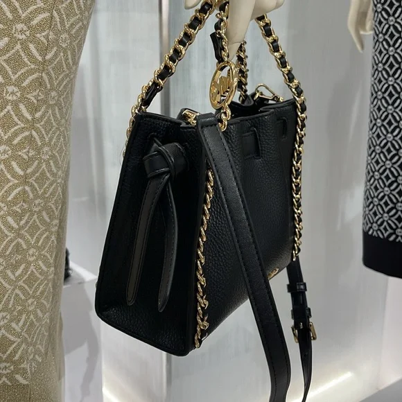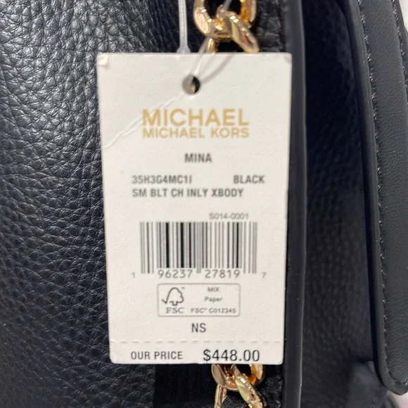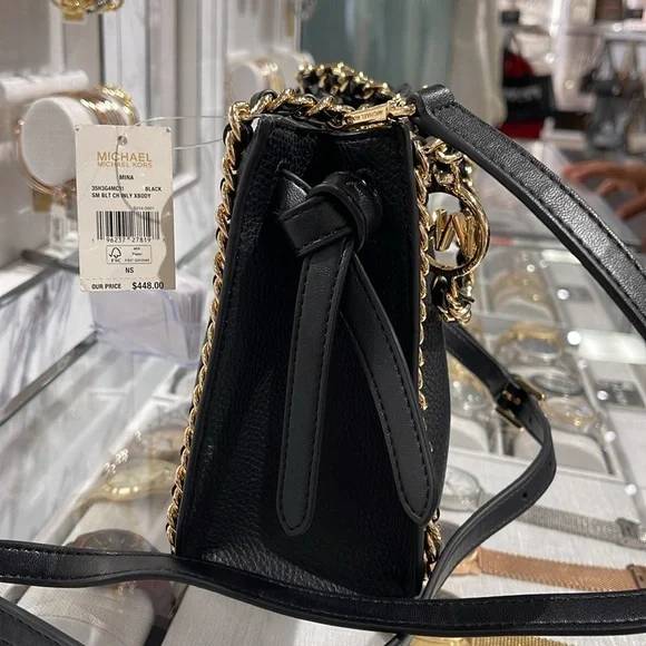Michael Kors Women´s Mina Small Belted Chain Crossbody Bag - Black - Shoulder BagsNWT Authentic An everyday staple, newest Mina bag will never go out of style. Made with a compact interior and shiny chain details for a touch of glam, it´s the perfect bag to throw over your shoulder for an easy transition from day to night.Crossbody bag• Pebble Leather • Gold-tone hardware• 8.25"W X 6.75"H X 3.5"D• Interior details: 3 back card slots• Lining: 100% polyester• Snap fastening• Imported