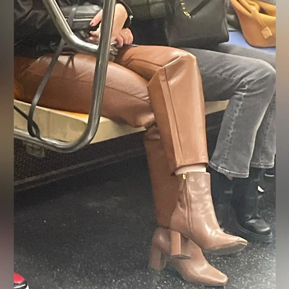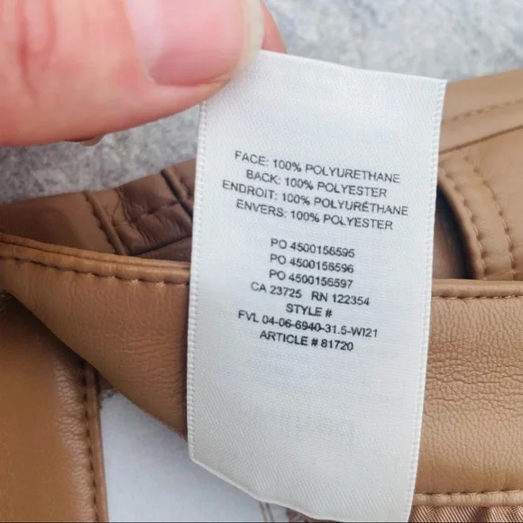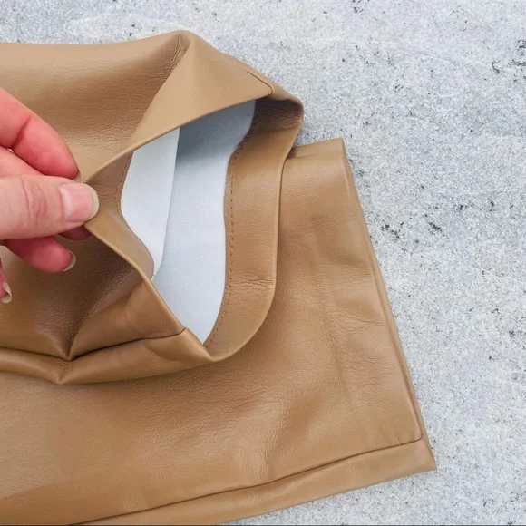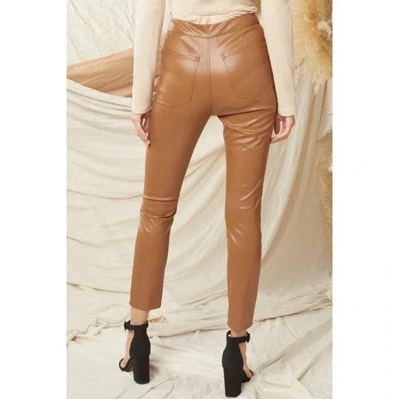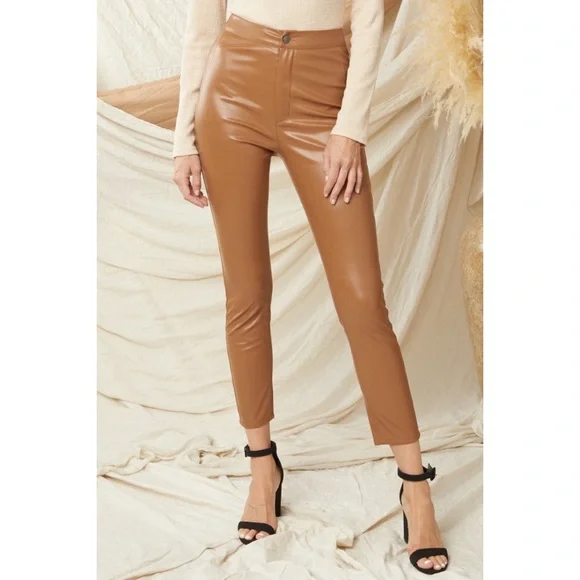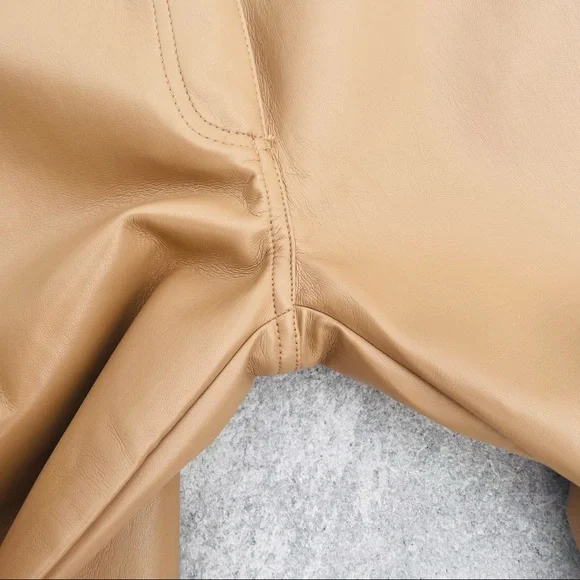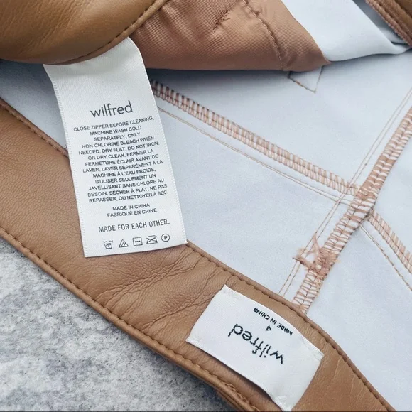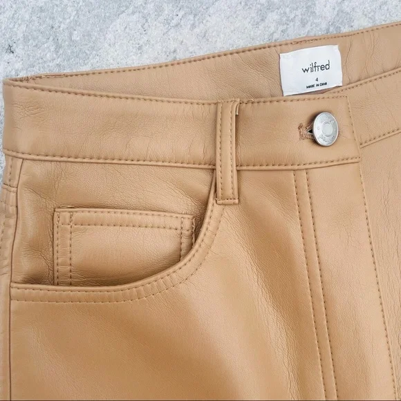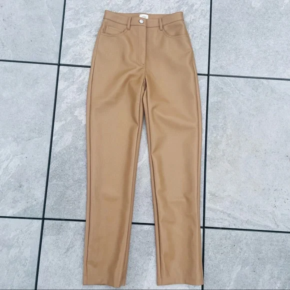 Wilfred Faux Patent leather Faux pants Jeans LeggingsBelt loops Zip fly5-pocket design Brand’s Size tag 4NEW WITHOUT TAGSSz 4Flat waist: ~13.5”-14.5” it’s stretchy It’s still online for $190Super sexy and fly as f*"k, ´Haridan´ are this season´s goto trousers. Made from an amazing light and stretchyFabric, ´Haridan´ pour over your curves to create theperfect booty. Front fastening and belt loops makethese super versatile. Team yours with black lace or anoversized T.Made from stretch vinyl faux leather nylon like material feels like skin on touch. Textile white fully lined for easy pull on off.Color: Milky coffee, in the video are the darker tan pants that I have in Sz6, filter my closet by pantsNEW without tags, no flaws, gained weight, never had a Chance, closet life that tag is not from this pant - just for your reference for the price Faux leather Skinny tight Wide ankle straight leg pants Latex Vinyl Wet effect