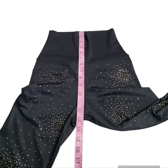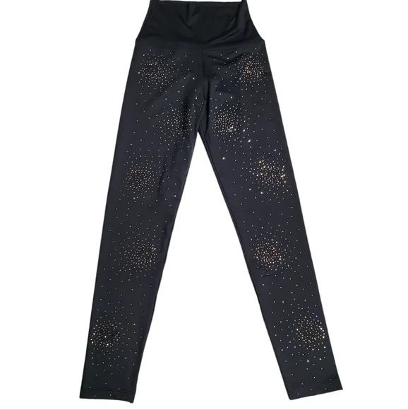 Beach Riot Leggings in Black.Medium size.Leggings with gold rhinestones.High waist.One of the pebbles is missing.it is not noticeablethe model has the same style different color#020
