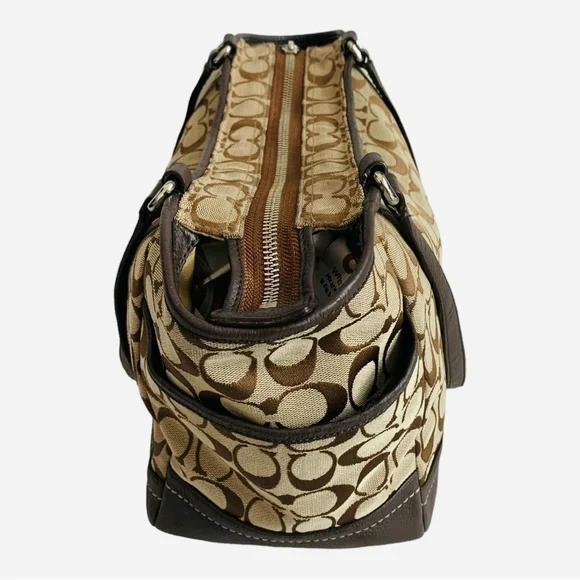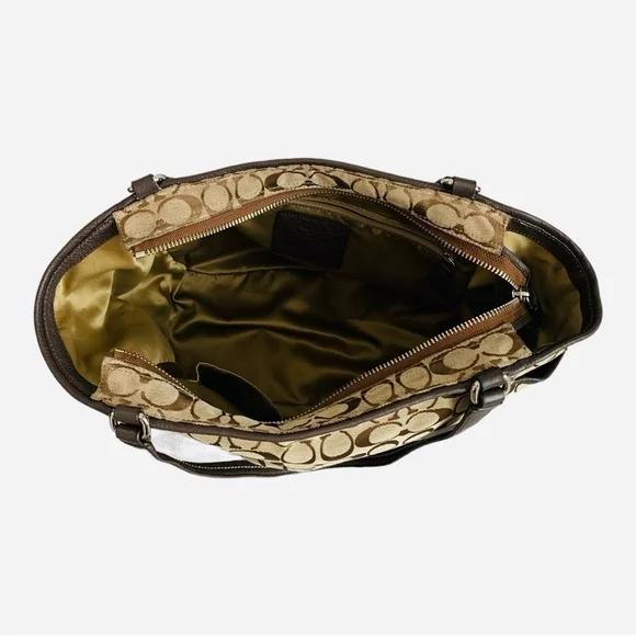 COACH Park Signature Tote Brown Tan Canvas Leather Handbag Zip Closure Women Bag