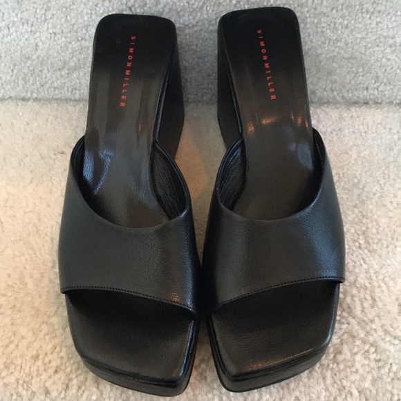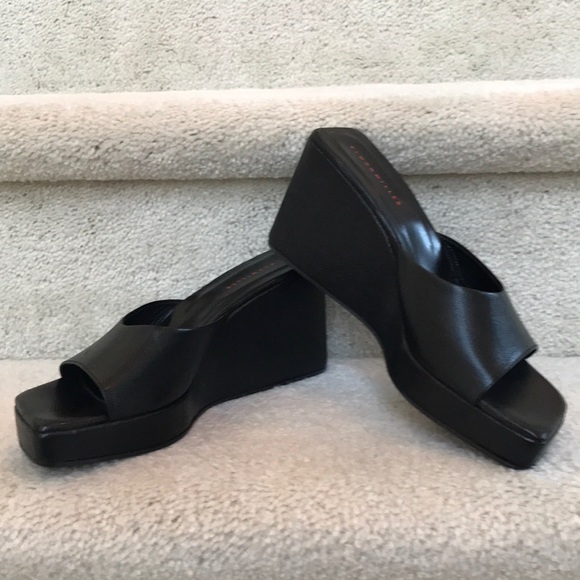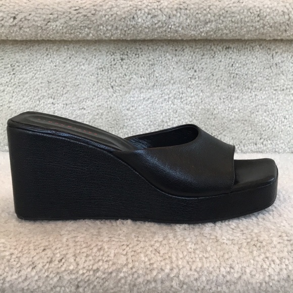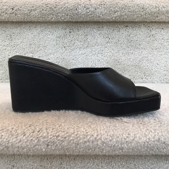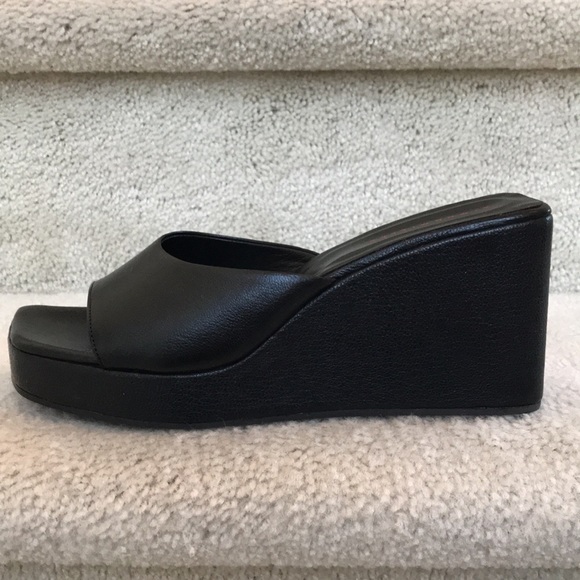 MINT CONDITION - Like New! No Flaws! Black calfskin leather / small pebbled design on wedgeMade in PortugalBack of wedge is 3.5"