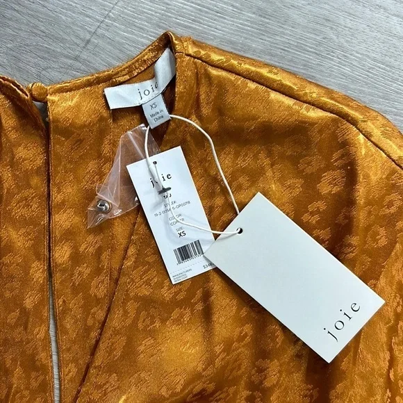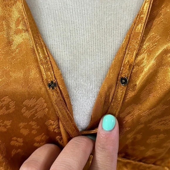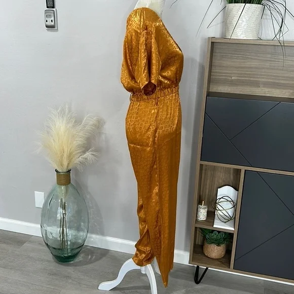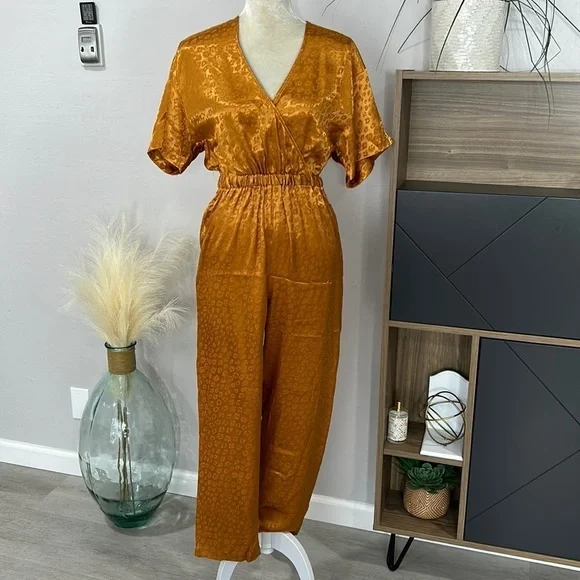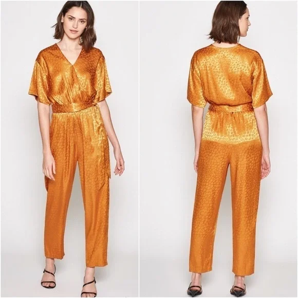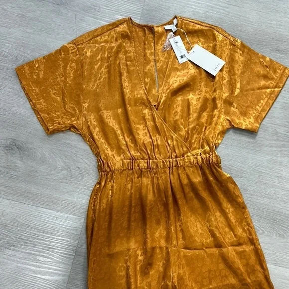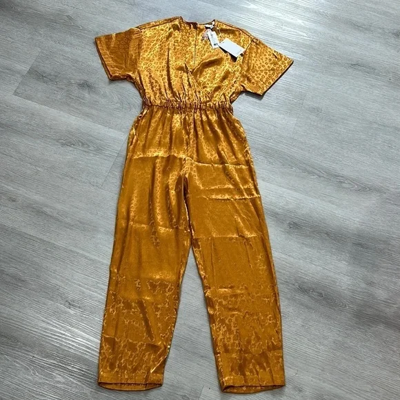 New with tag; missing waist tieSize XSColor Copper Gold52% poly 48% rayonDry clean onlySurplice frontElasticized waist18” pit to pit 13” waist27” inseamWaist tie not included