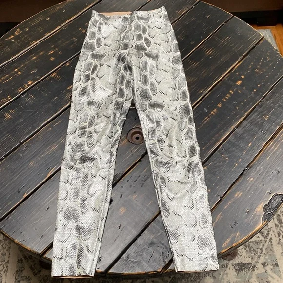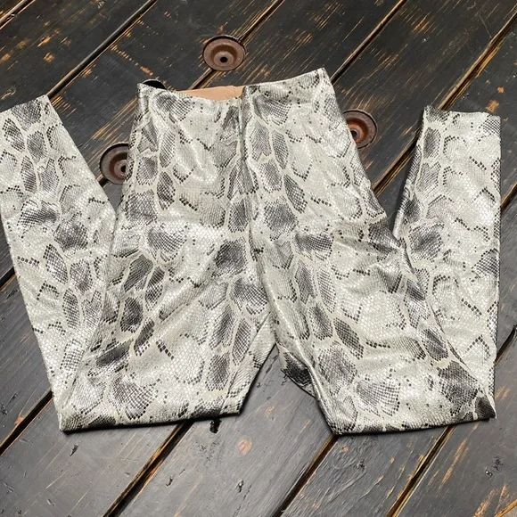 NWOT - Tags removed, tried on, but never worn out!PRODUCT DETAILSFits true to size, order your normal size10" rise, 27" inseam, based on a size smallModel measurements: 5´10" height, 33.5" bust, 23.5" waist, 34.5" hips, wearing a size smallElasticized waistbandAllover faux-leather finishFour-way stretchPull-on styleImported