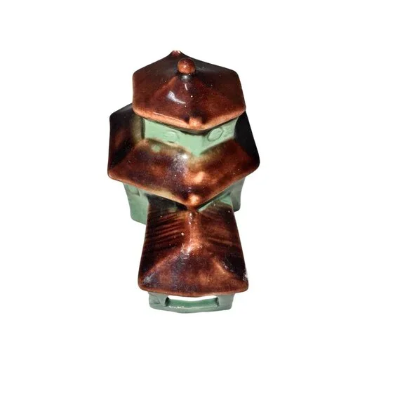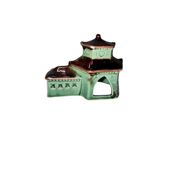 Vintage Ceramic Pagoda aquarium Green & Brown Asian-Inspired Home Decor