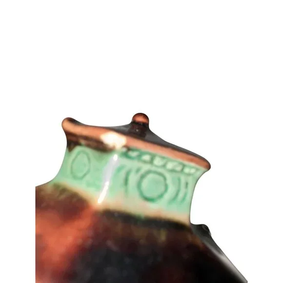 • Handcrafted ceramic material• Features intricate Asian-inspired pagoda design• Dual-tone green and brown glaze• Measures approximately 4" x 3" x 3"• Open windows for...