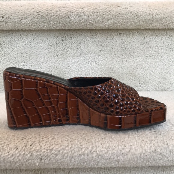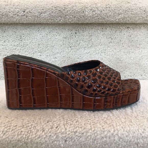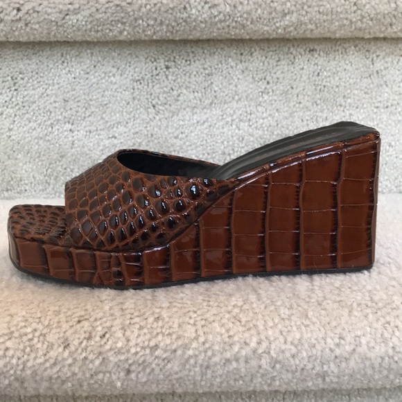 MINT CONDITION - Like New! No Flaws! Crocodile-embossed leather Made in PortugalBack of wedge is 3.5"