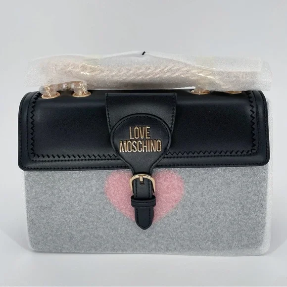 Love Moschino Heart Gold Chain Convertible Shoulder Bag Crossbody Flap Purse