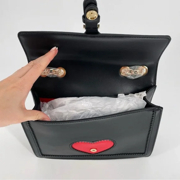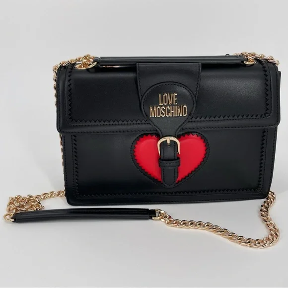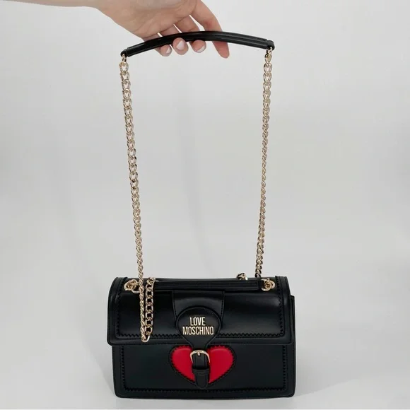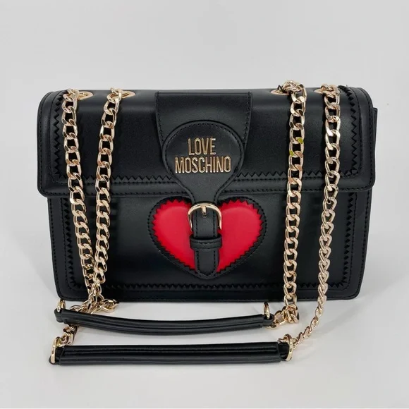 Love Moschino Heart Gold Chain Convertible Shoulder Bag Crossbody Flap PurseBrand new with tags and dust bagDimensions: 10.5” W x 7.5” H x 3.5” DAdjustable shoulder straps with chain detailGold tone hardwareBrand logo accentStructured, standing Trim detailLightly padded designBuckle and strap accentFlap and magnetic disc closure1 interior zip pocket, 1 interior slip pocketVegan leatherImportedTags: Moschino, Boutique Moschino, Versace Jeans Couture, , Karl Lagerfeld, Marc Jacobs, , Alice + Olivia, Coach, Furla, Pinko, Patrizia Pepe Aldo, Charles and Keith, Guess, Steve Madden, Nine West, Kate Spade Outlet, , Zara, Mango, Betsey Johnson, Parfois, Accessorize, Anya Hindmarch, Olympia Le Tan, Judith Leiber, Kate Spade New York, Lulu Guinness, Les Petits Joueurs, Manu Atelier, Staud, Cult Gaia, Boyy, Coperni, Shrimps.