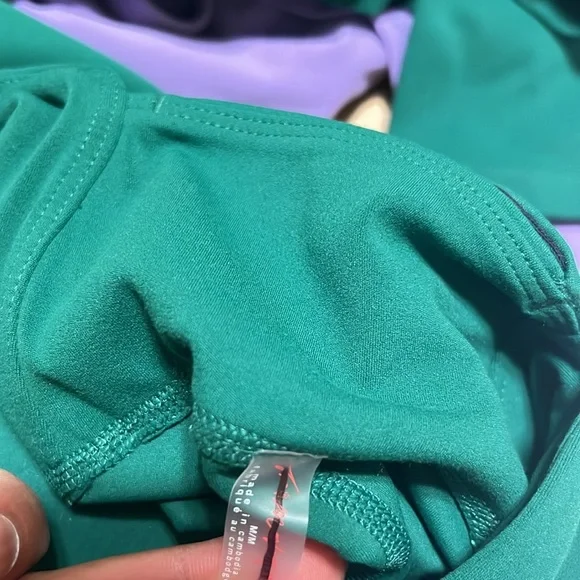 Length 50”, inseam 25”, measurements is taking on the Small. It’s deep green