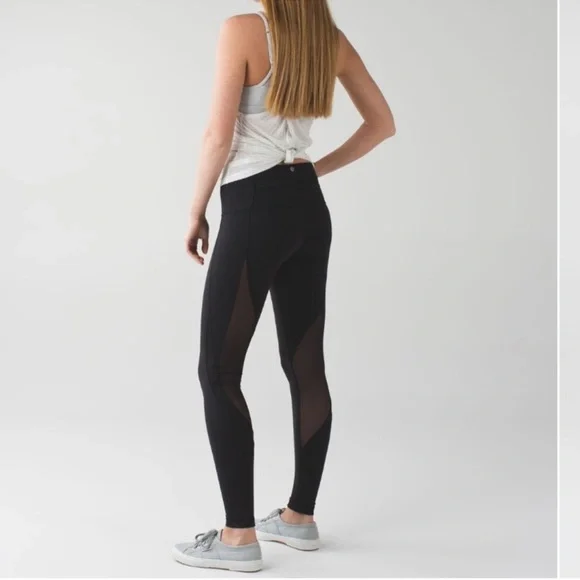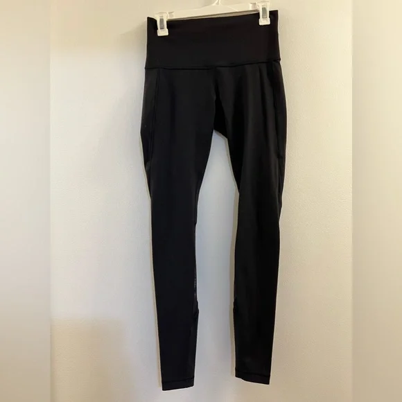 Pre-loved, Special Edition, Lululemon Wunder Under Pant (Hi-Rise) *Full-On LuonShine On - Black in excellent condition, Focus on your form (not on your temperature) in these breathable, Mesh-panelled pants.Key featuresa tight-knit version of our Luon® fabric, Full-On® Luon gives incredible support and coverage with a cottony-soft feeladded LYCRA® fibre moves with you and stays in great shapestash your phone in the back waistband pocketHugged SensationimportedFit + functiondesigned for: yoga, gymfabric(s):Full-On® Luonfit: tightrise: mediuminseam: 30 1/2"leg opening: 7 3/4"hemmable: yes