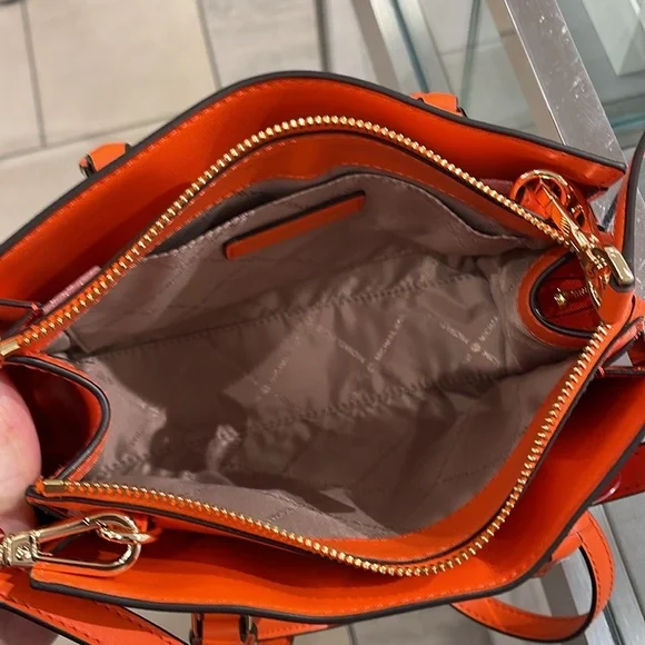 MICHAEL KORSSheila Small Faux Saffiano Leather SatchelPoppy NWT