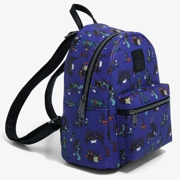 Loungefly Disney The Nightmare Before Christmas Halloween Town Icons Mini BackpackFeatures an allover toss of iconic locations from the film like Spiral Hill, Town Hall,...