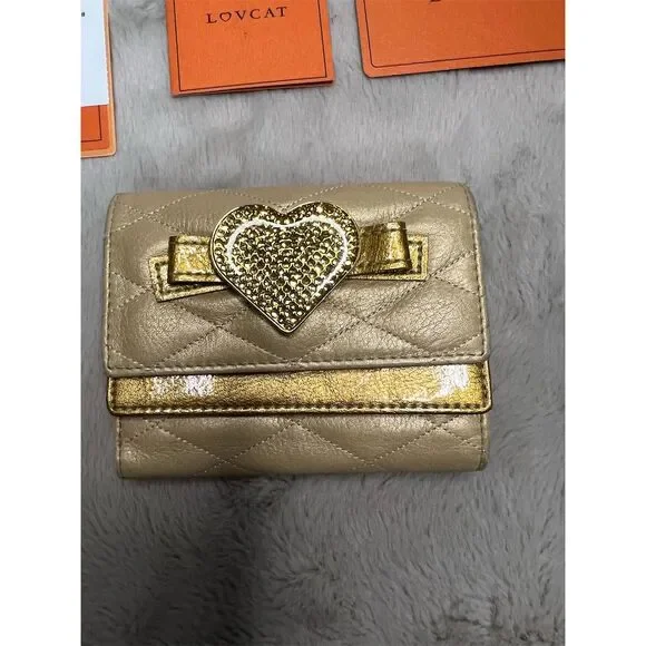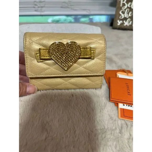 Lovcat Paris Women´s Gold Leather Trifold Wallet with Heart Design