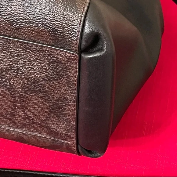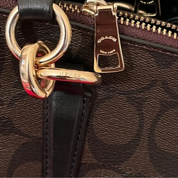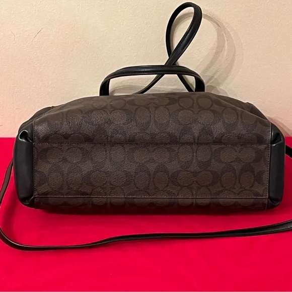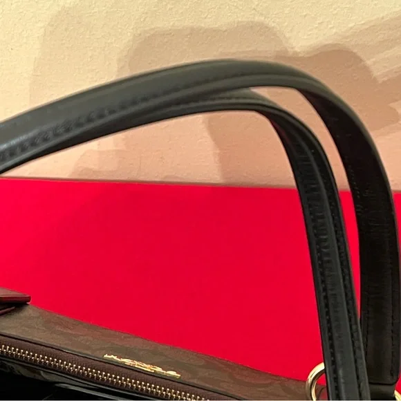 Coach Christie Logo Detailed Double Zip Carryall Brown/Black Signature Coated Canvas and Leather Mini Bag Satchel. This beautiful Christie bag from Coach is highly functional while also being charming. Crafted from signature coated canvas, the bag features dual handles, a brand signature on the front, and gold tone hardware.The fabric lined interior comes with the ideal amount of space to house your valuables. 14-1/2" x 5" x 9-7/8"Strap Drop: 8-1/2". NWT