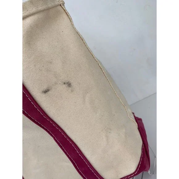 Features:• L.L. Bean Boat and Toet• USA Made• Canvas Tote Bag• Medium• Cream and Red / Maroon• StainedMeasurements: Taken Laid FlatWidth 13 in / 33 cmHeight 11.5 in / 29 cmDeep 5 in / 13 cmCondition: Pre-Owned See Photos for Details GoodStained See Photos for Details Thank you for checking out my posh closet!I am a fast shipper with a non smoking home.