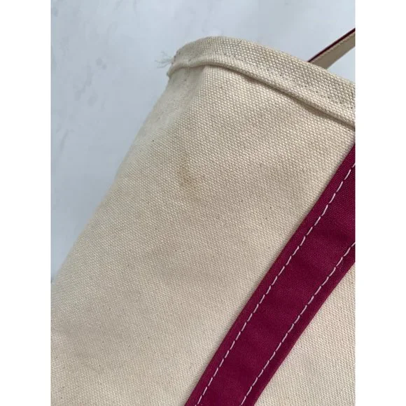 L.L. Bean Boat and Tote USA STAINED Medium Cream Red/ Maroon Canvas