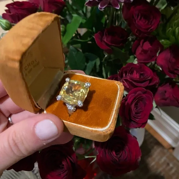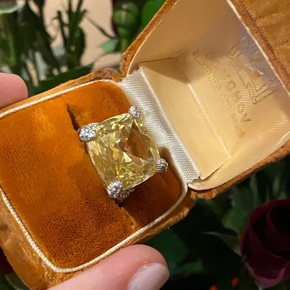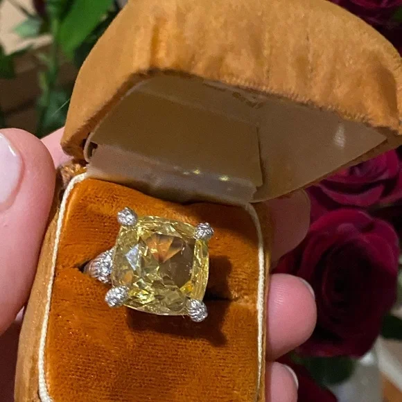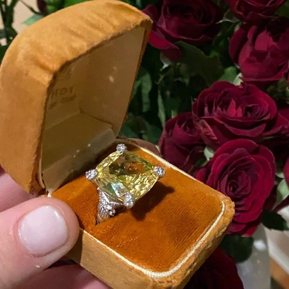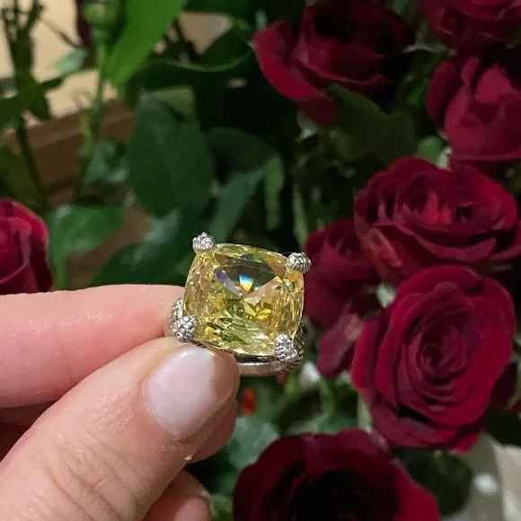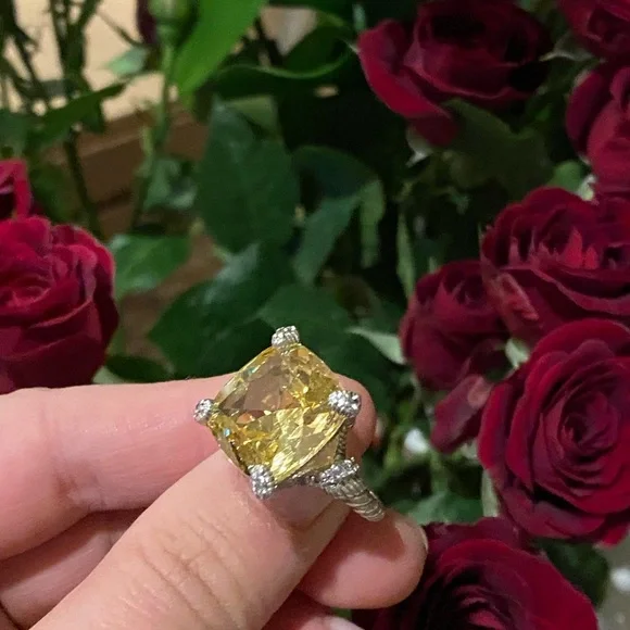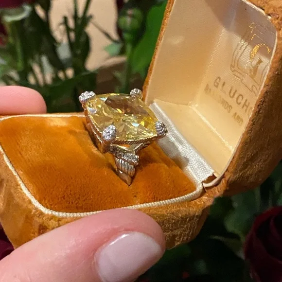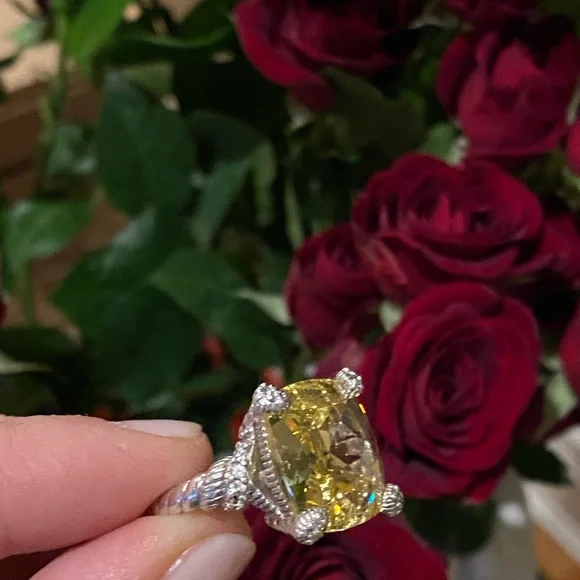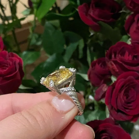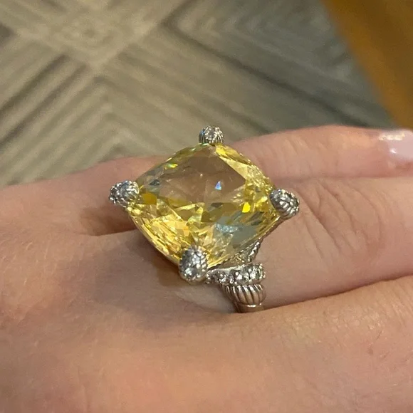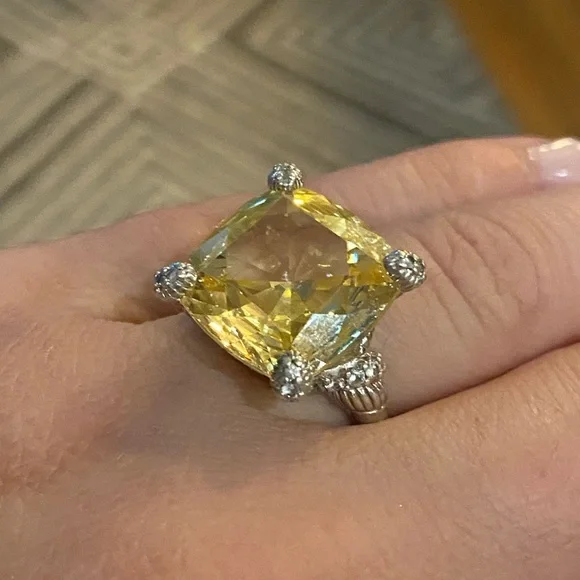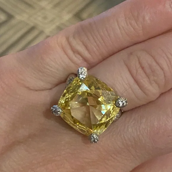 Judith Ripka 925 Sterling Canary Quartz White Sapphire Twist Ring Size 6 1/2