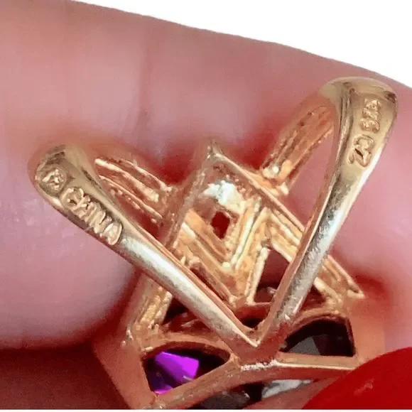 Ross Simons Purple CZ Trillion Cut Gold 925 Pendant