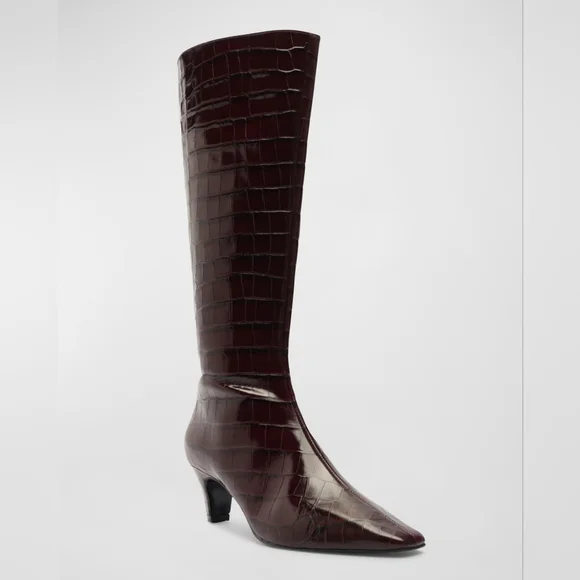 Brand New. Never Worn. Dellia is a bold knee-high boot featuring a trendy pointed toe and kitten heel, perfect for wearing with jeans and a button-down when strutting out for your...