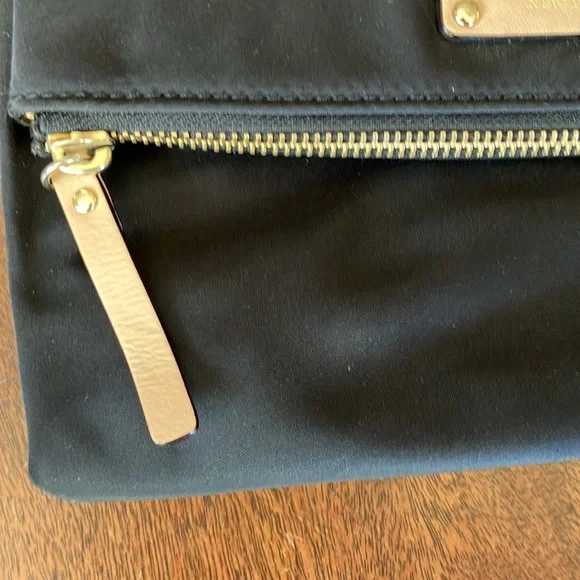 This sleek black crossbody bag from Kate Spade combines elegance with functionality, featuring a minimalist design and high-quality craftsmanship. Its compact size and versatile style make it perfect for both casual outings and formal occasions. The bag´s understated elegance is enhanced by its subtle metallic accents, making it a timeless addition to any wardrobe.