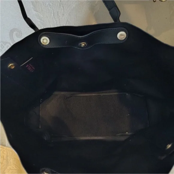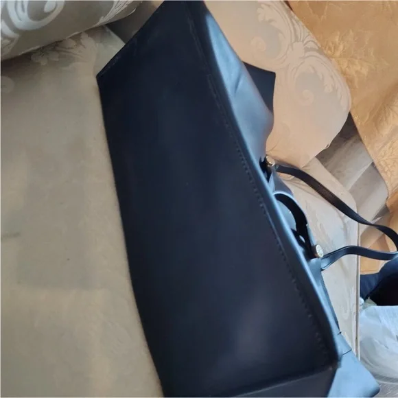 This stylish blue tote from Furla is crafted with a textured material, offering a spacious interior perfect for daily essentials. Its classic rectangular shape and sturdy handles ensure both functionality and elegance, making it a versatile accessory for any occasion.EUC