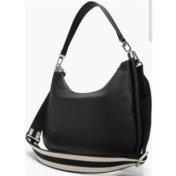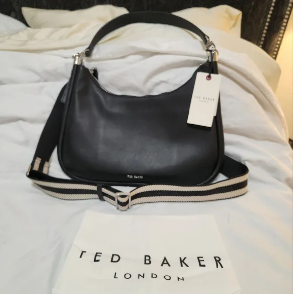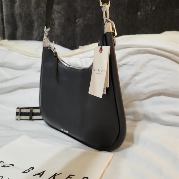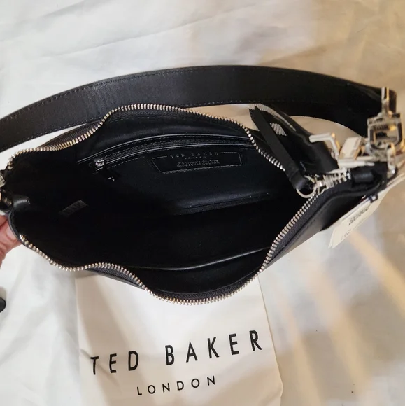 Ted Baker LondonNeve Shoulder BagColor: BlackMSRP: $275.00!Details & careGleaming hardware elevates a slim shoulder bag fashioned with multiple straps for versatile styling while on the go.Top carry handle; removable, adjustable crossbody strapInterior zip pocketCotton liningLeatherImported