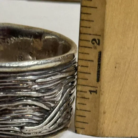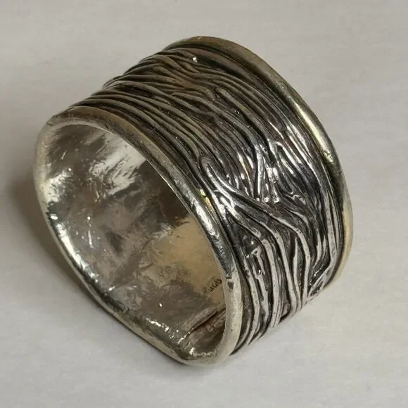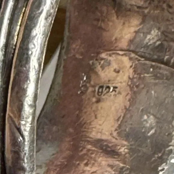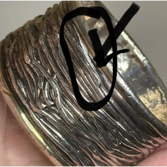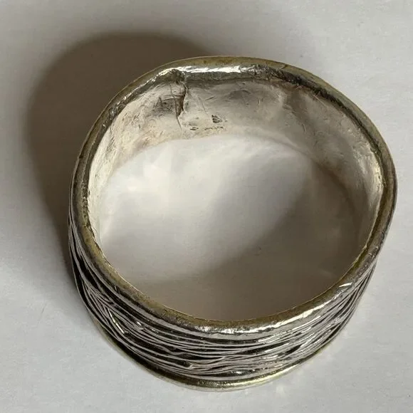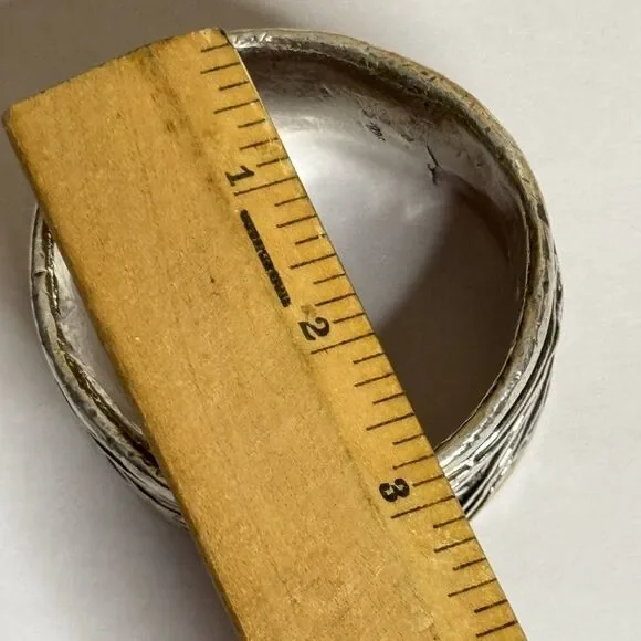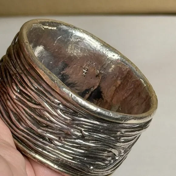 BAT-AMI ISRAEL 925 Silver Vintage Wide Bangle BraceletHas some patina, last picture is a crack I believe, see picture.Approx 2-3/4 across and 1-3/4 in height