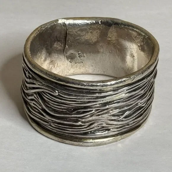 BAT-AMI ISRAEL 925 Silver Vintage Wide Bangle Bracelet