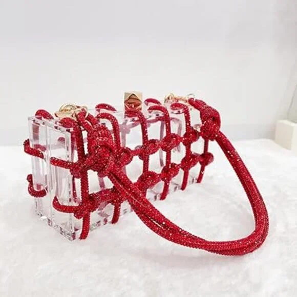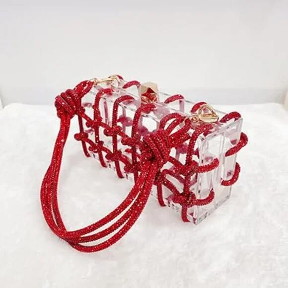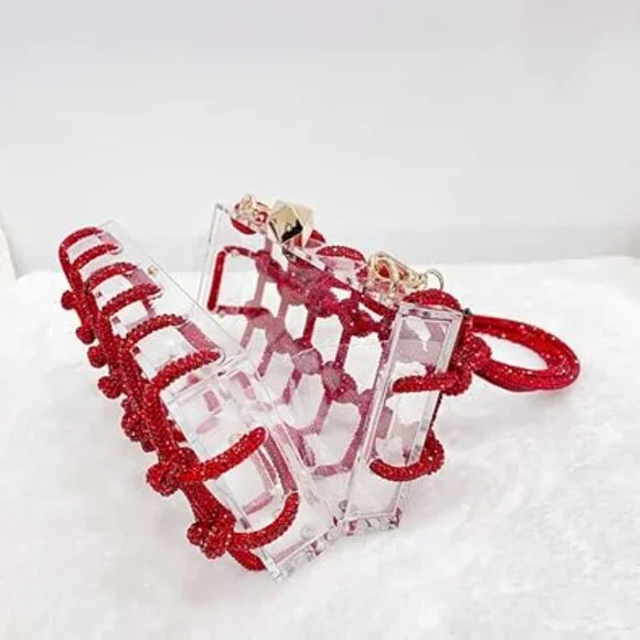 Neiman Marcus Lucine Lipstick Red Acrylic Rhinestone Clutch BagThis glamorous Lucine Acrylic Rhinestone Clutch is made from premium quality rhinestones and acrylic, offering durability and a dazzling, stylish finish. The bag´s radiant shine makes it a perfect statement piece for any occasion, adding a touch of sparkle to your outfit. Measuring 7.67 x 2.36 x 3.74 inches, it’s the ideal size to hold your phone, keys, glasses, and other small essentials while keeping your hands free. Perfect for parties, weddings, and dates, this clutch also makes an excellent gift for birthdays, Valentine’s Day, Mother’s Day, Women’s Day, Thanksgiving, Christmas, or the New Year — a thoughtful and chic accessory for any celebration. The clutch is adorned with sparkling crystal rhinestones and crafted with exquisite craftsmanship, making it both chic and unique. The bag features transparent lining on both sides to keep your items secure and prevent them from falling out.#RhinestoneClutch #NeimanMarcus #ShinyBag #GiftForHer #ChicAccessory