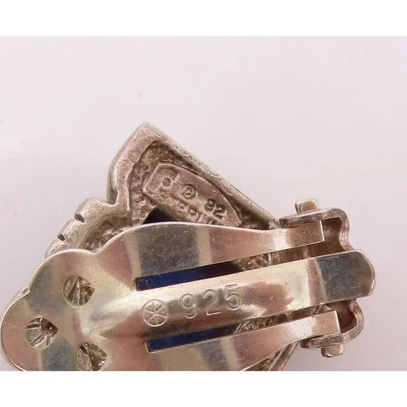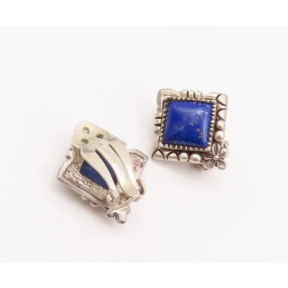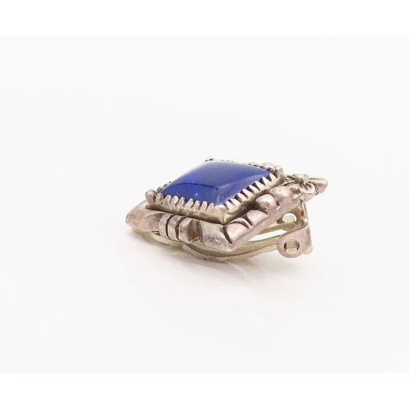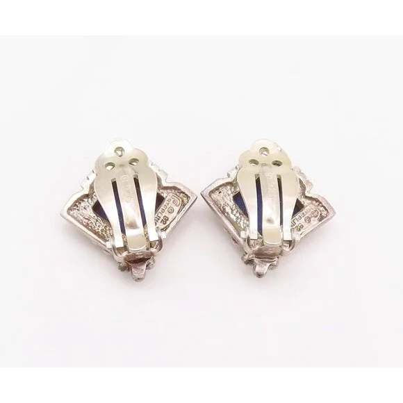 925 Sterling Silver Vintage Earrings CAROL FELLY Lapis Lazuli Clip Back EG13622