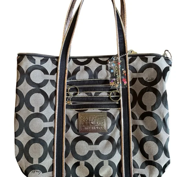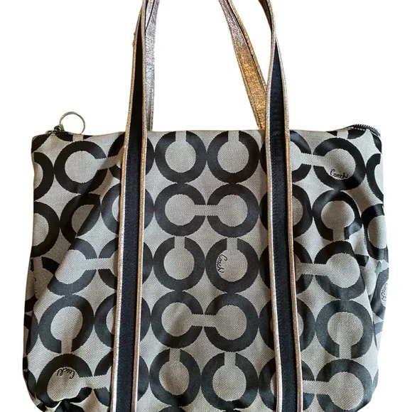 Coach Poppy Black and Gray Geometric Tote Bag