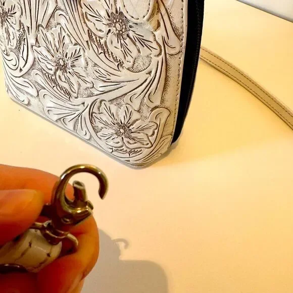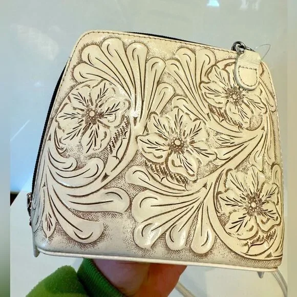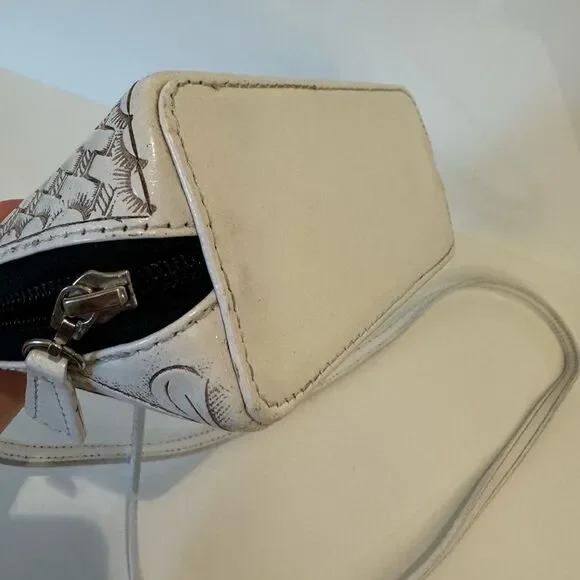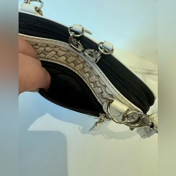 Origenes by David Luna White Leather Crossbody Bag Floral & Basket Tooling boho