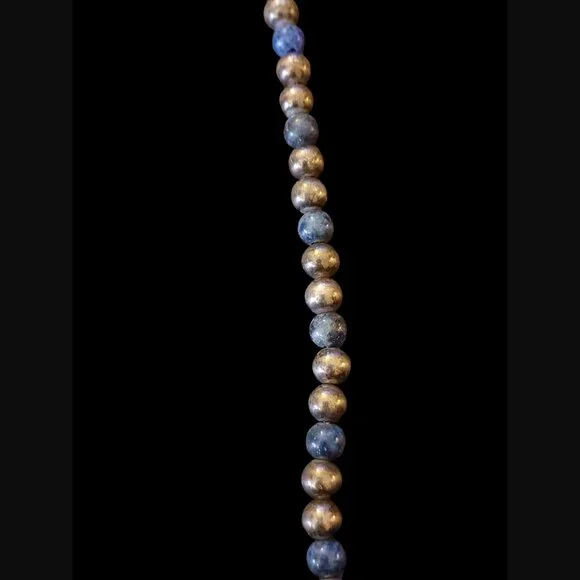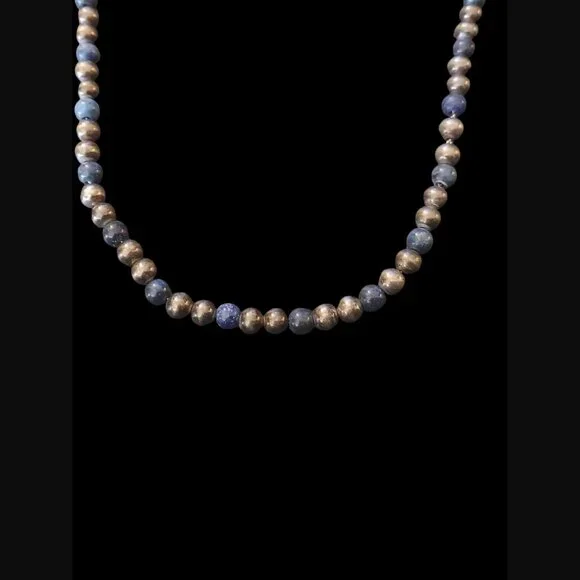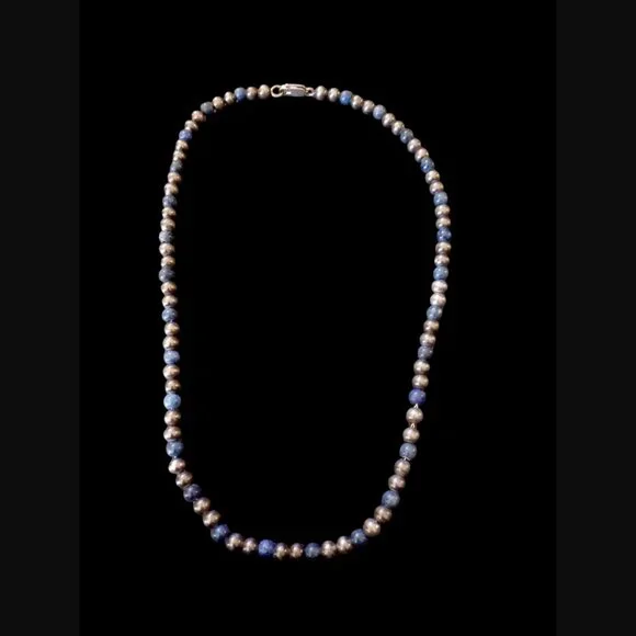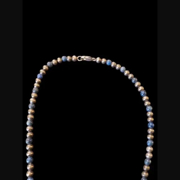 Vintage Navajo Pearl 925 Sterling Lapis Stone 20.5" Long 6mm Bead Necklace