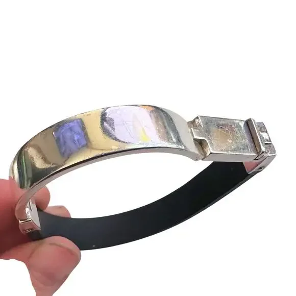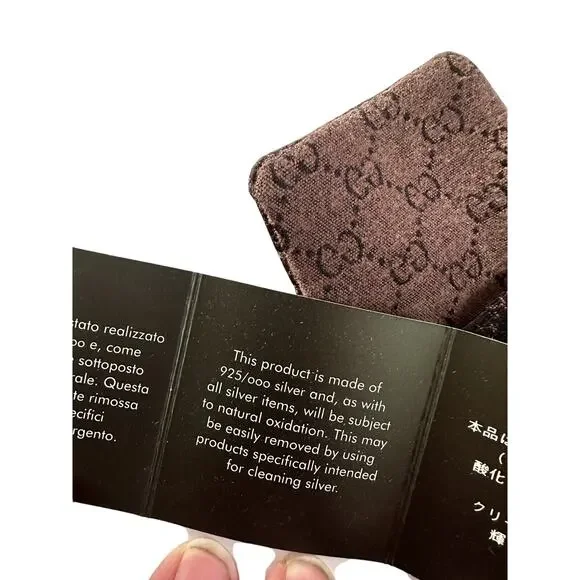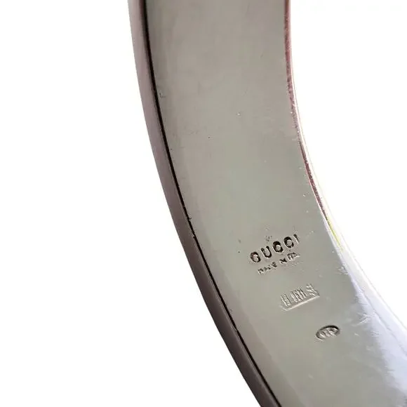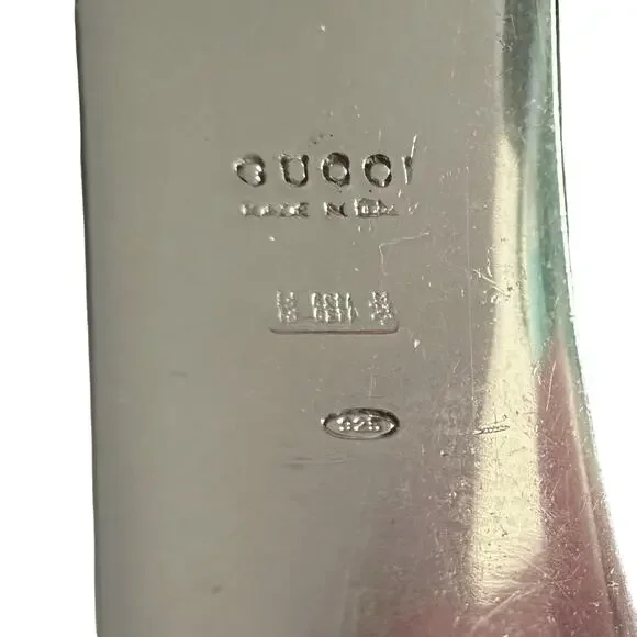 ID bracelet. Sterling silver hardware with rubber band. Brown cube box, Velvet GG Logo dust bag, care instructions and card included. Some dings / wear to finish on hardware but...